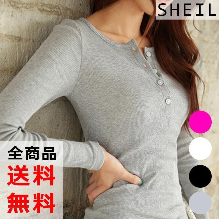 楽天市場 送料無料 透ける Tシャツ ヘンリネック セクシー レディース 長袖 カットソー トップス 深vネック のびのび 伸縮性 ボタン 無地 シンプル タイト スリム ストレッチ インナー 夏 秋 Atic